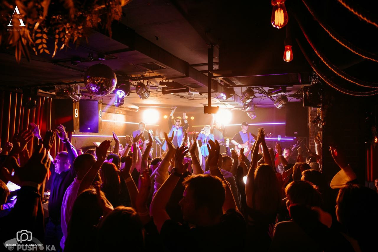 - Основной зал на 150 гостей, где проходят живые концерты, качественный звук и атмосфера настоящего музыкального шоу. На большой сцене с мощным звуком и профессиональным светом выступают различные группы и артисты из Курска и других городов России.