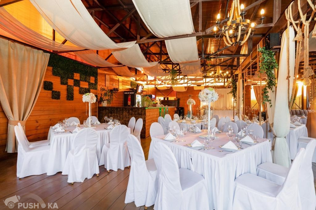 - Большая летняя терраса в стиле южного курорта на 80 гостей, где царит уютная атмосфера, мягкая мебель, бар, сцена и профессиональное звуковое оборудование.