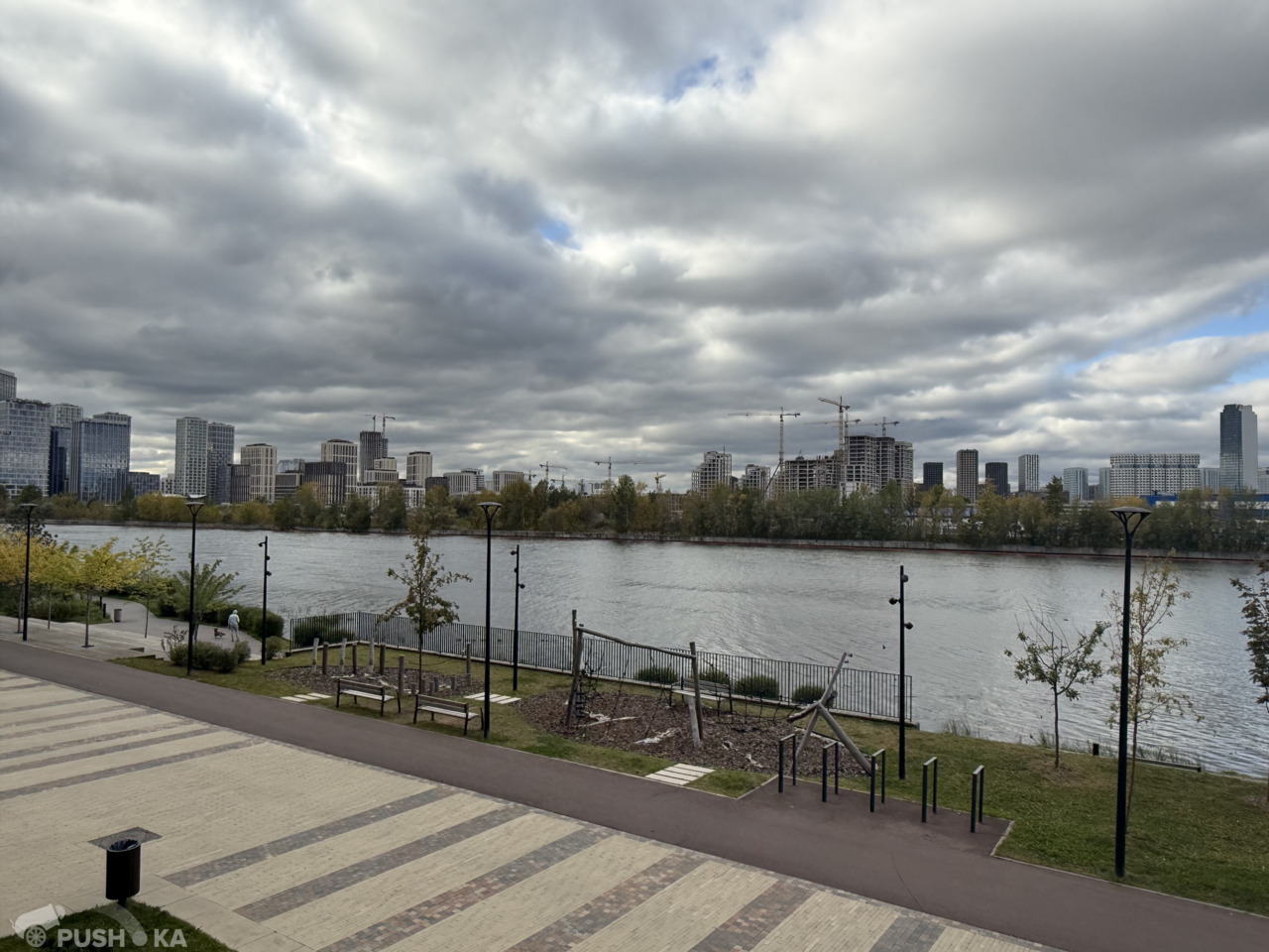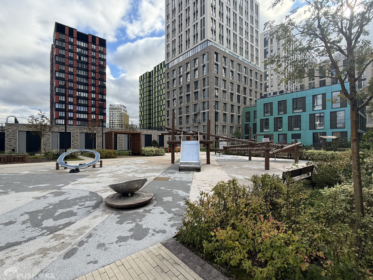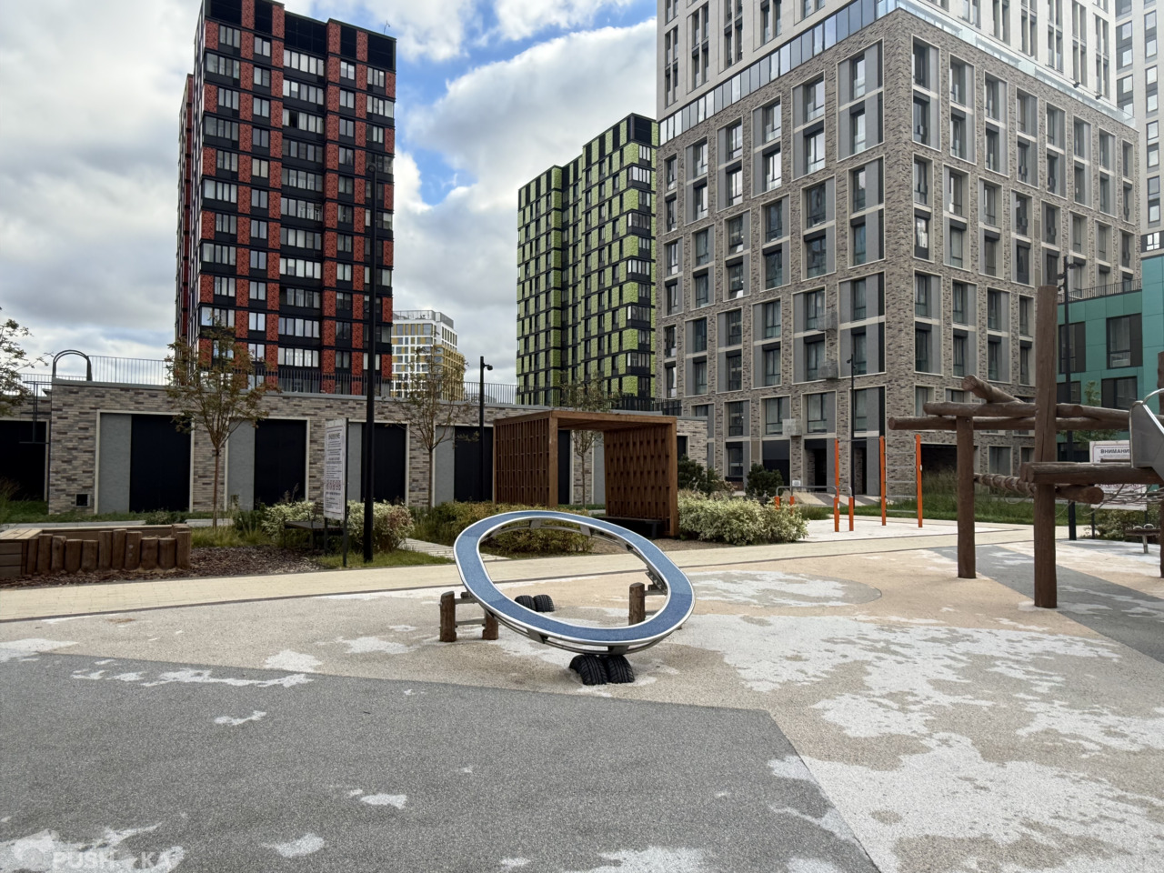 - Пешеходные дорожки, лавочки, зоны отдыха для всех возрастов, детские площадки, игровые и спортивные, экотропа, беговые и велосипедные дорожки.