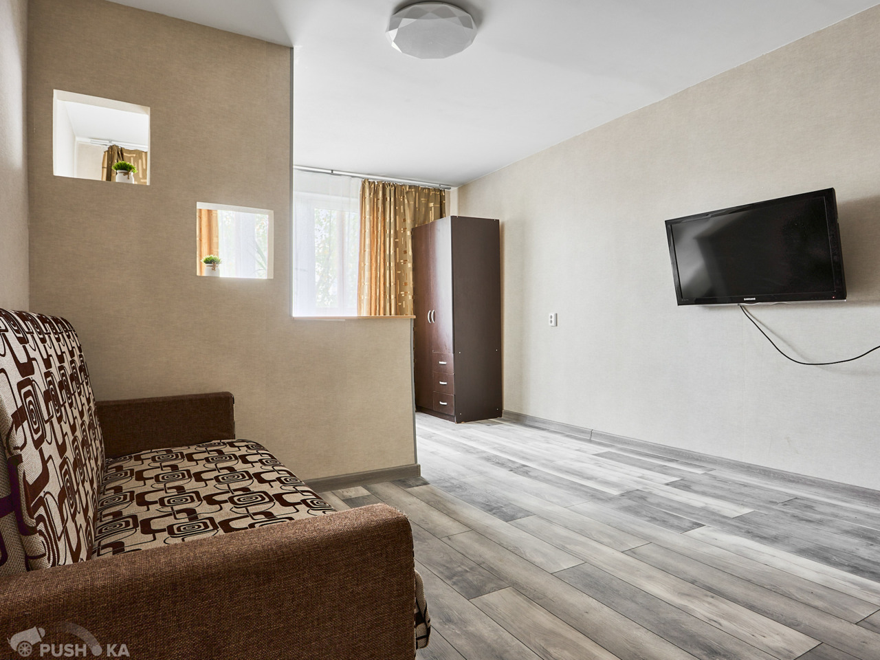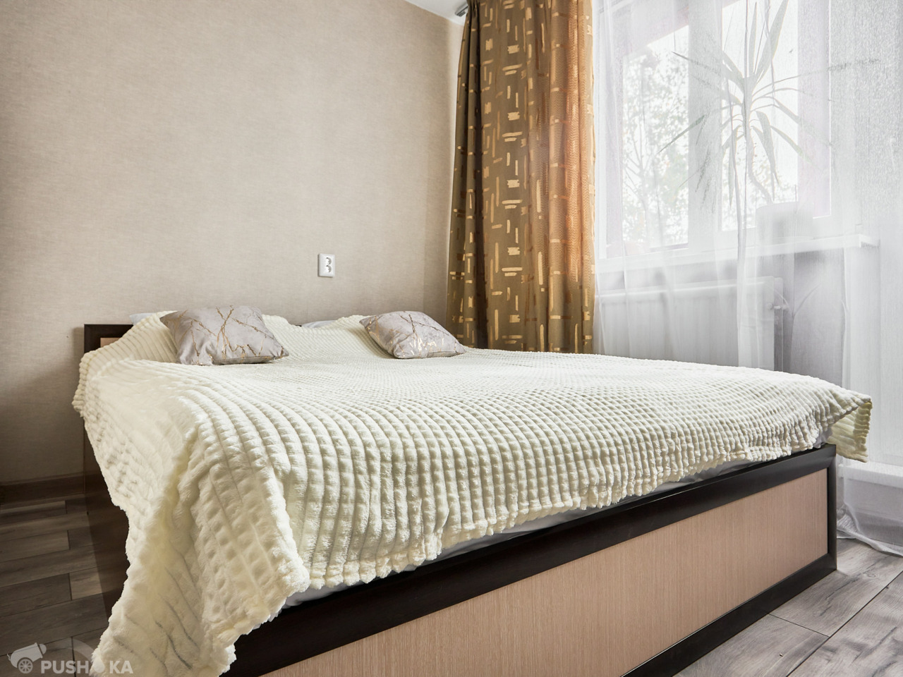 Квартира светлая и очень уютная, с продуманной планировкой: есть отдельная зона спальни для отдыха и просторная гостиная 22,6 м² для жизни.