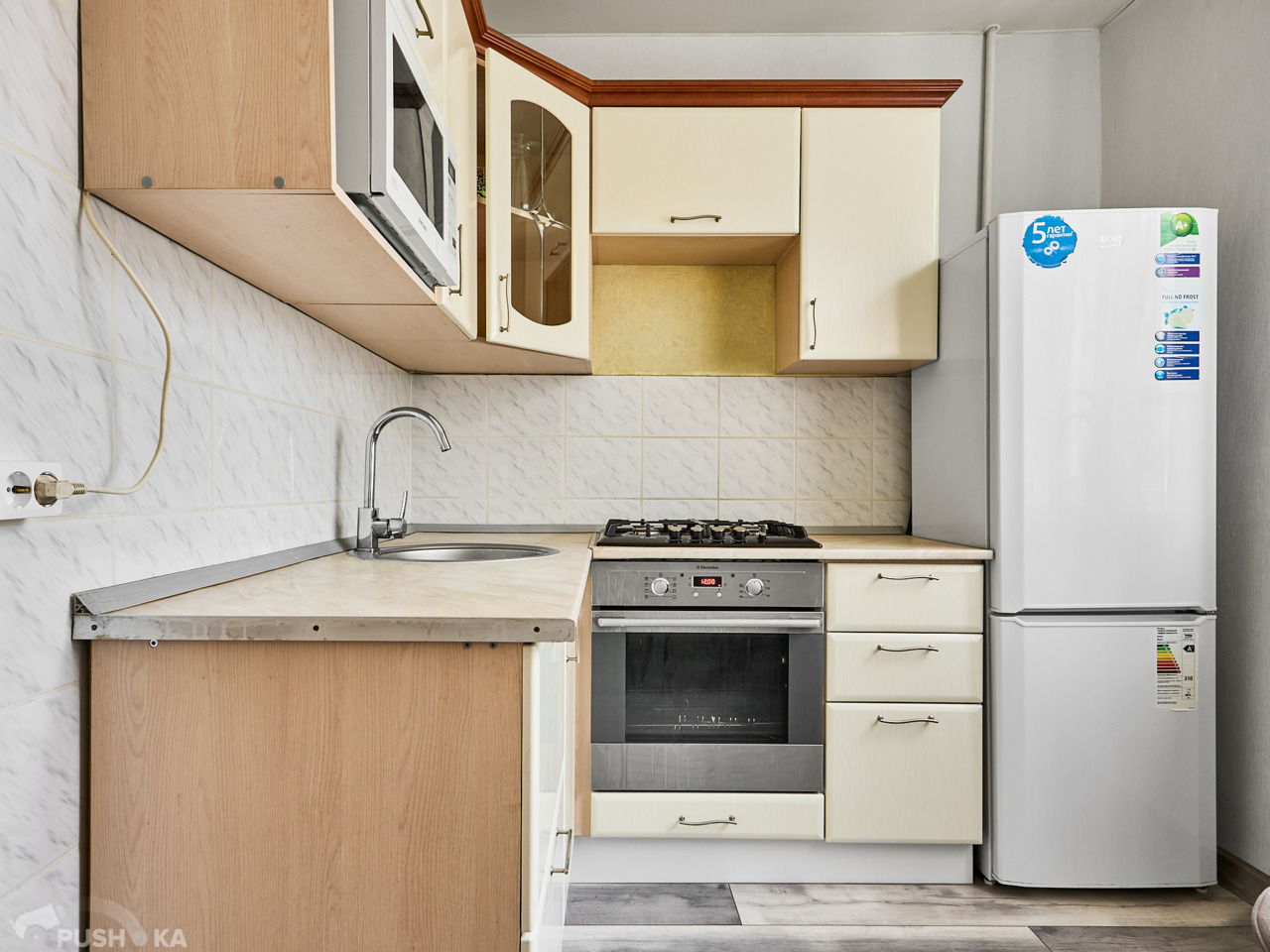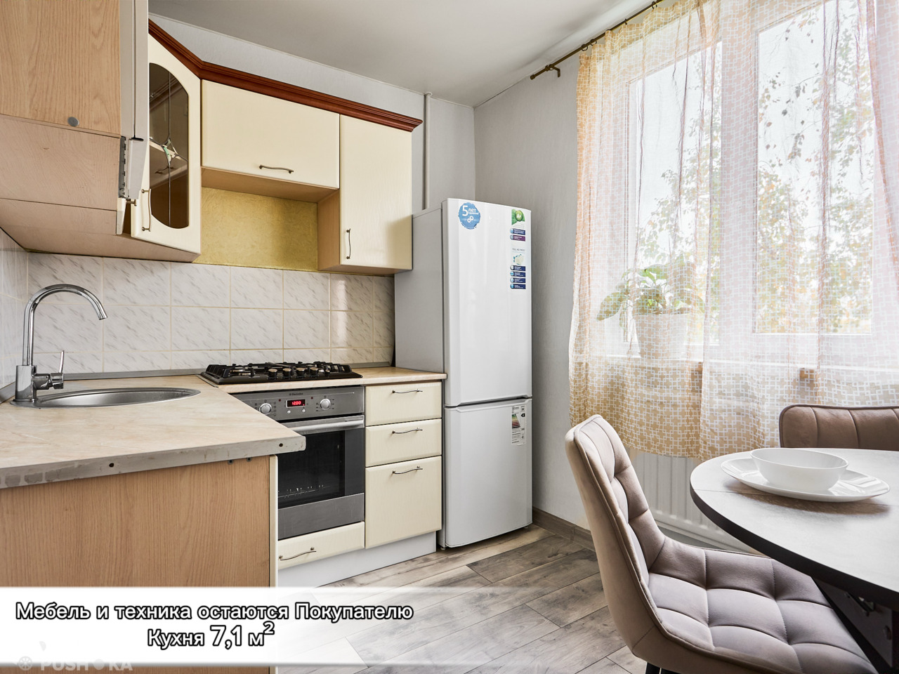 Вся мебель и техника, включая укомплектованную кухню 7,1 м², остаются новому хозяину по договоренности.