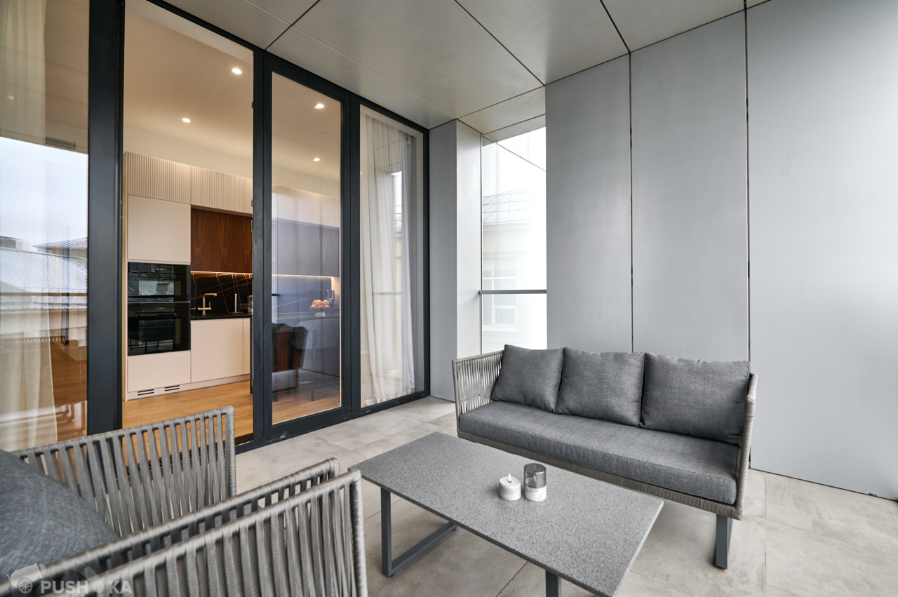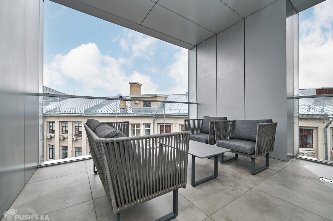 Над внутренним пространством работал визионер Гарри Нуриев, создавший атмосферу частного ателье, где каждая деталь — произведение искусства. Фасад из матового стекла наполняет интерьеры мягким, студийным светом круглый год, а ваша личная терраса на крыше дарит ощущение парижской легкости с видом на «питерские» крыши и легендарную высотку на Котельнической.