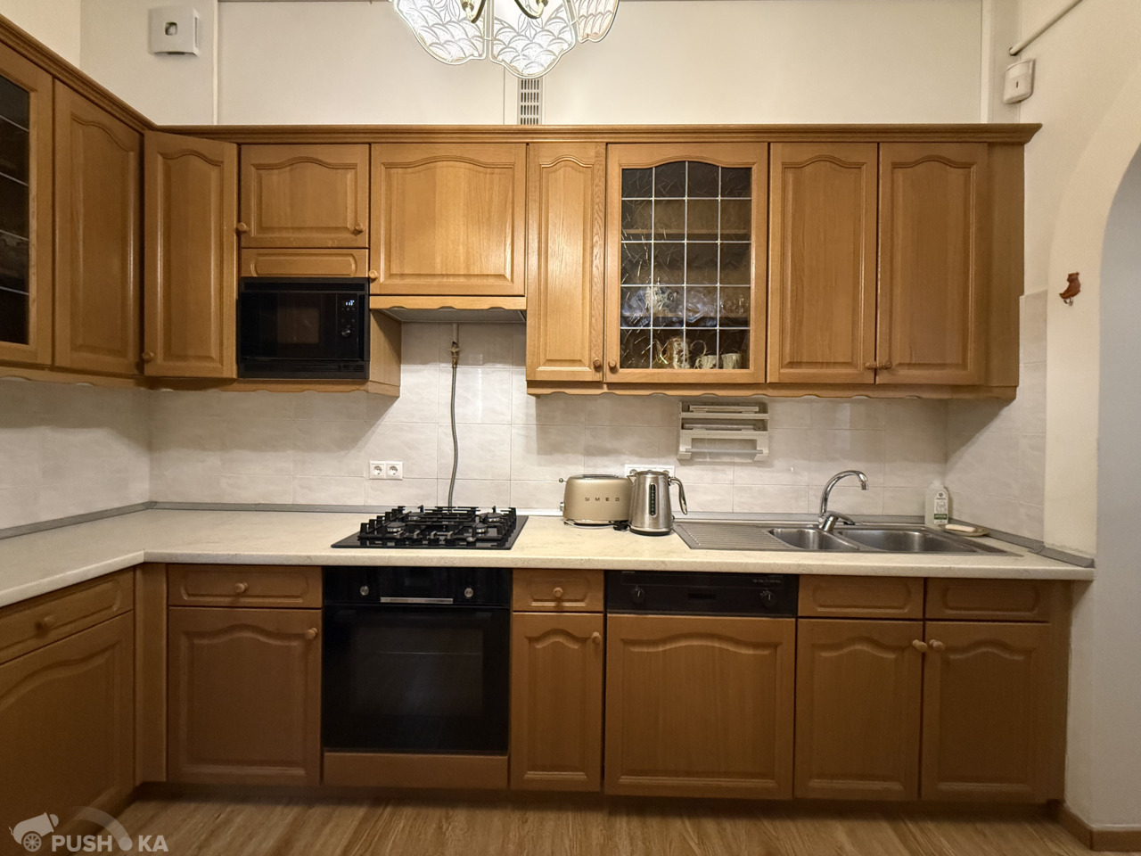Продается просторная 4-комнатная квартира, расположенная в доме после полной реконструкции (1993 г.), перекрытия ЖБ, высокие потолки, в доме есть лифт, въезд на территорию через шлагбаум.