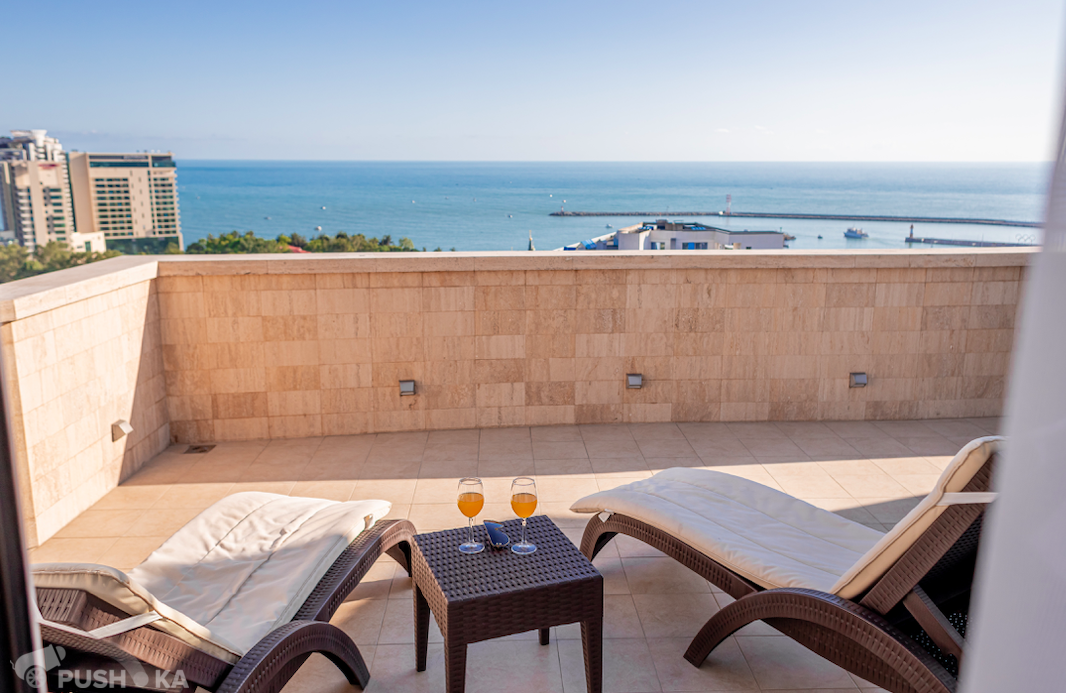 * 4 Панорамные просторные террасы с захватывающими дух видами на морской порт, отель Grand Karat Sochi, центр города, парк Ривьера.