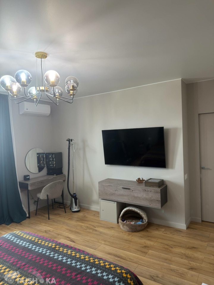 Планировочным решением предусмотрены кухня-гостиная - единое пространство, 2 изолированные спальни, одна из них с гардеробной комнатой. Квартира полностью оборудована и укомплектована современной мебелью и бытовой техникой.