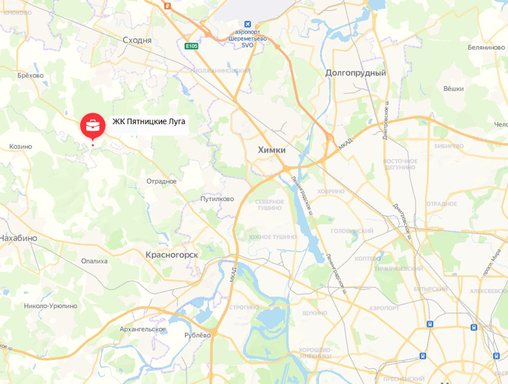 Новый жилой комплекс в городском округе Солнечногорск Московской области, рядом с Захарьинской поймой и Митинским лесопарком.