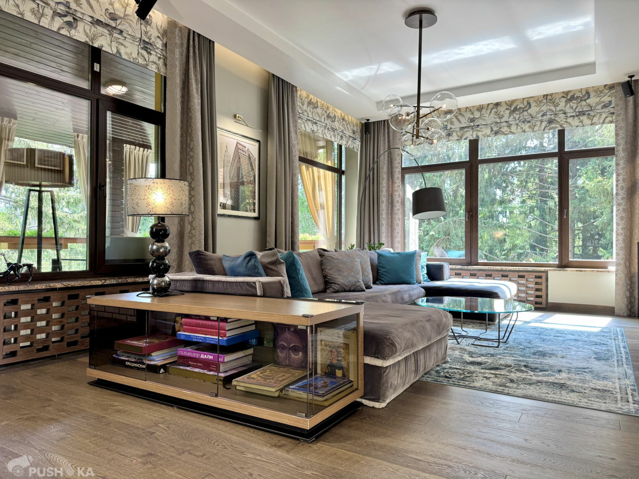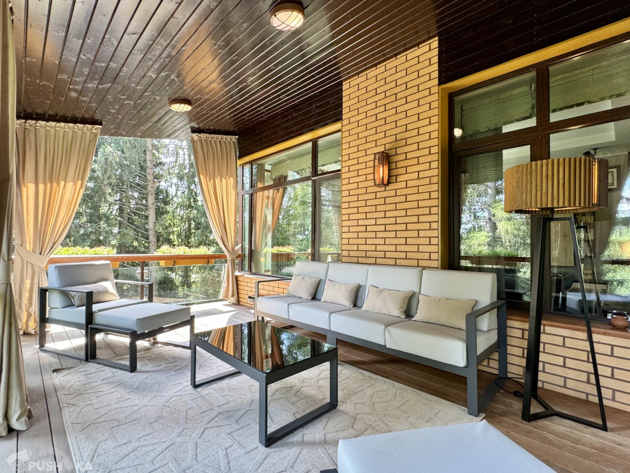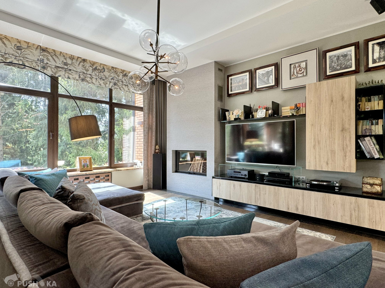 Авторский дизайнерский ремонт и стильный элегантный интерьер создают атмосферу высокого комфорта. Благодаря множеству панорамных окон, дом наполнен солнечным светом и ароматом окружающих его хвойных деревьев.