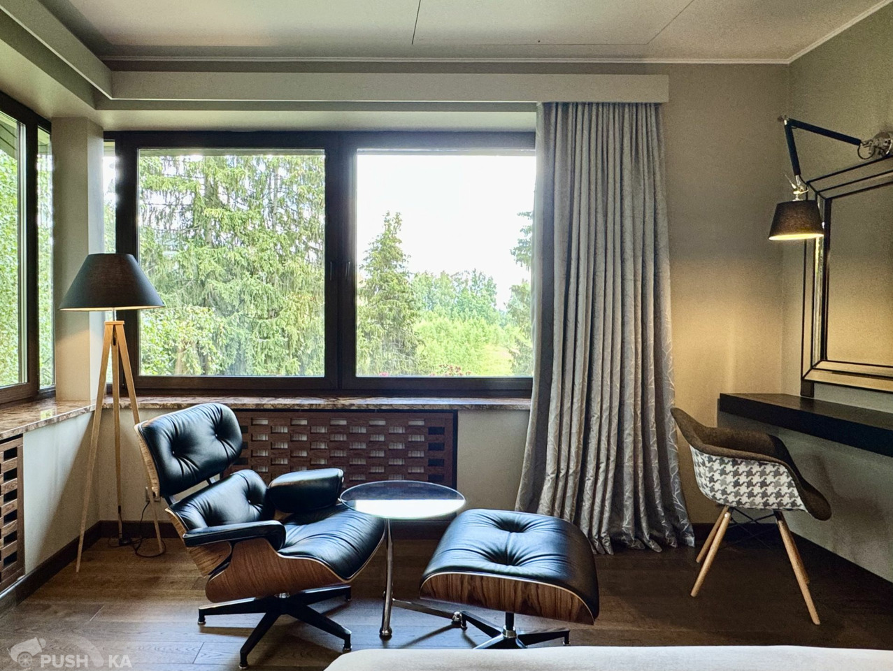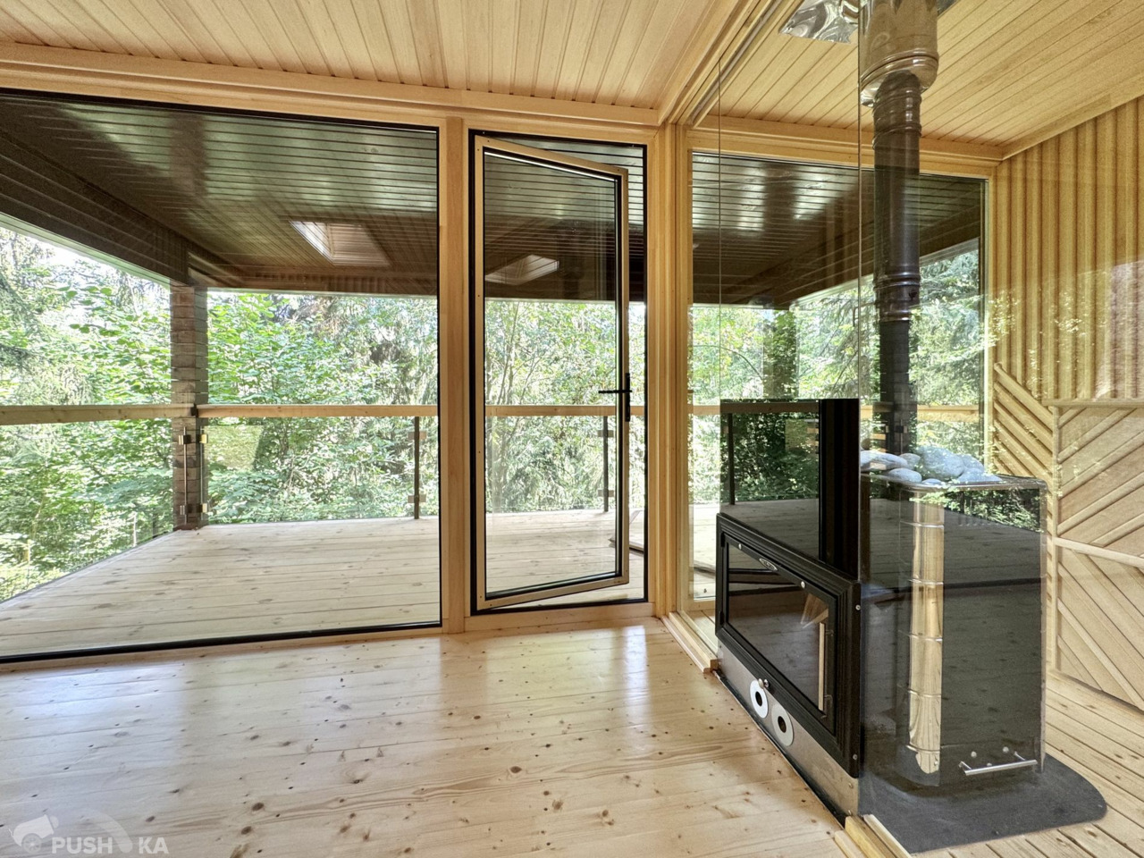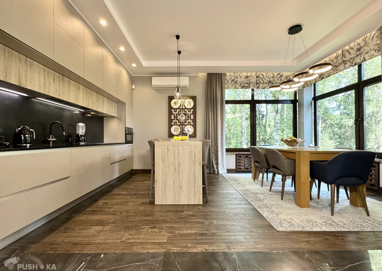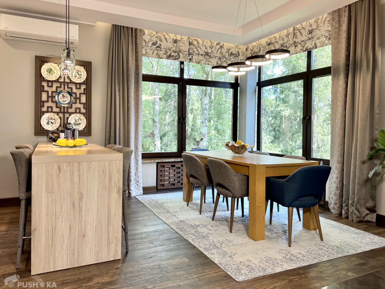 Авторский дизайнерский ремонт и стильный элегантный интерьер создают атмосферу высокого комфорта. Благодаря множеству панорамных окон, дом наполнен солнечным светом и ароматом окружающих его хвойных деревьев.