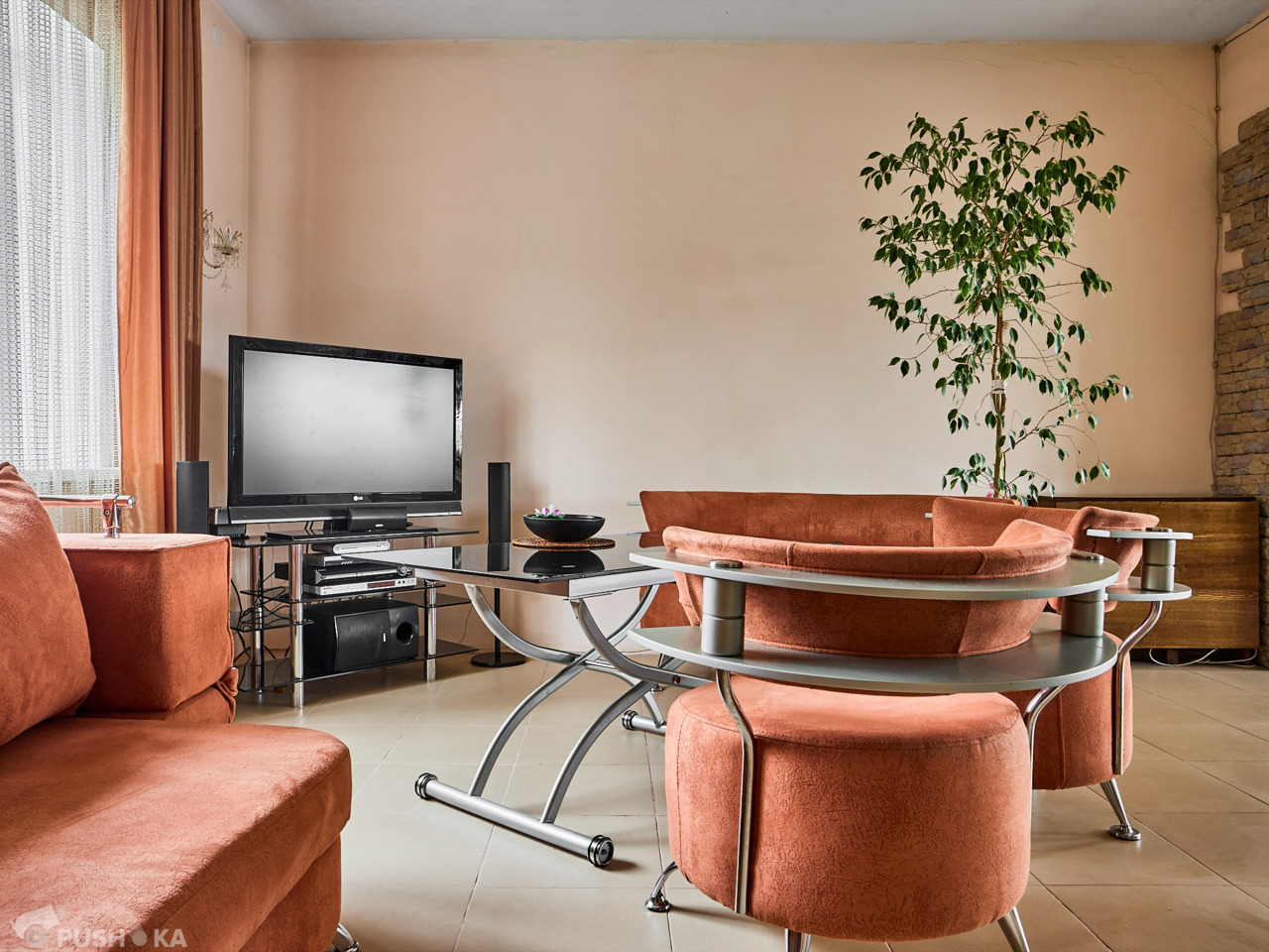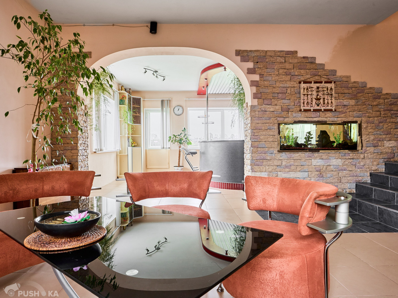 Просторная прихожая (9,7 м²), светлая гостиная (26,2 м²) и функциональная кухня (25,7 м²) с выходом на балкон. Для автомобиля и хобби есть гараж (26 м²) и мастерская (15,5 м²).