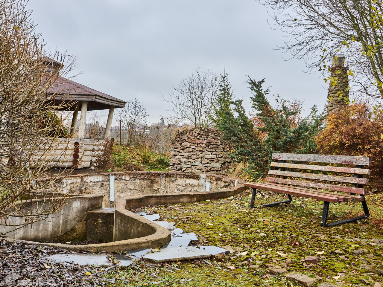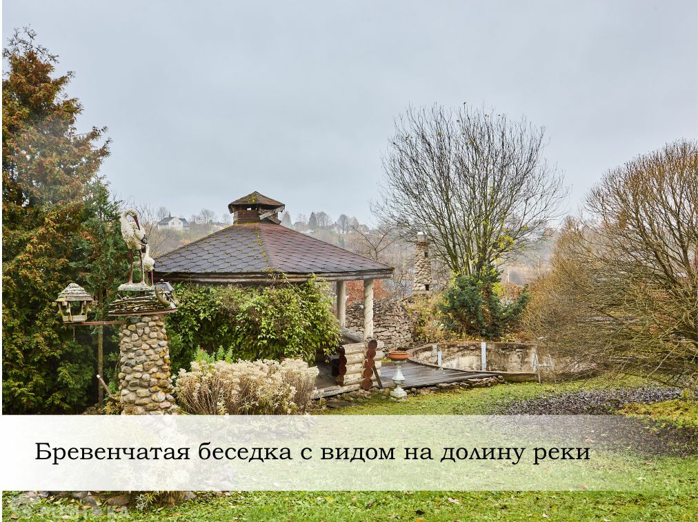 На территории есть печь для натурального холодного копчения. Беседка из бревна. Бассейн с фонтаном, и много элементов декора.