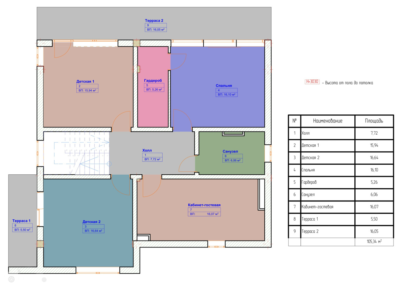 - две спальных комнаты с выходом на террасы;
