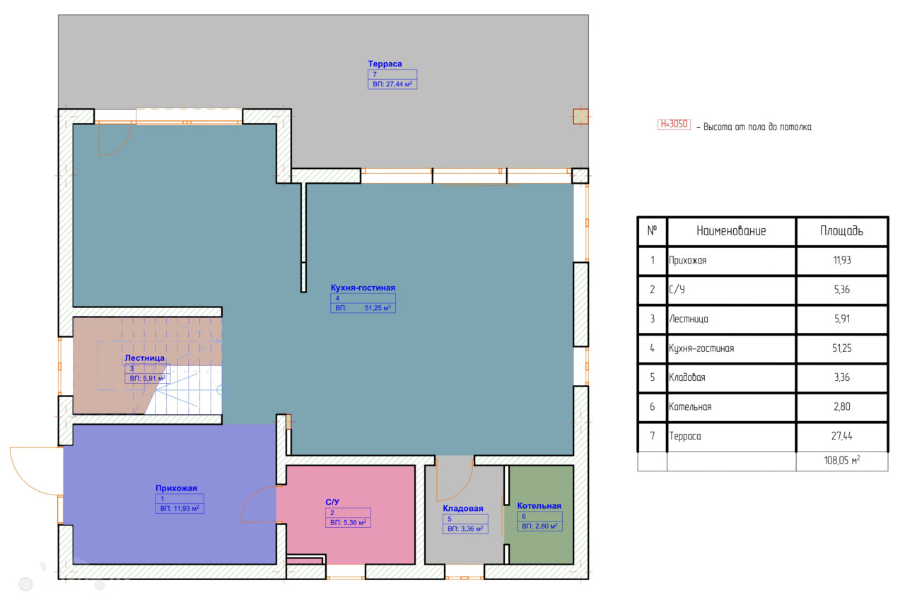 - просторная кухня-гостиная с выходом на террасу;