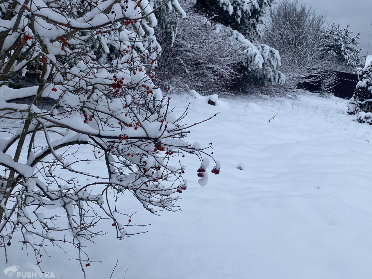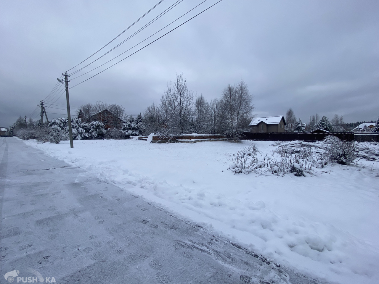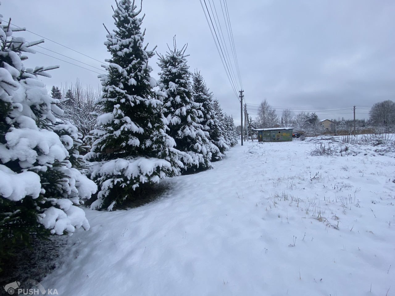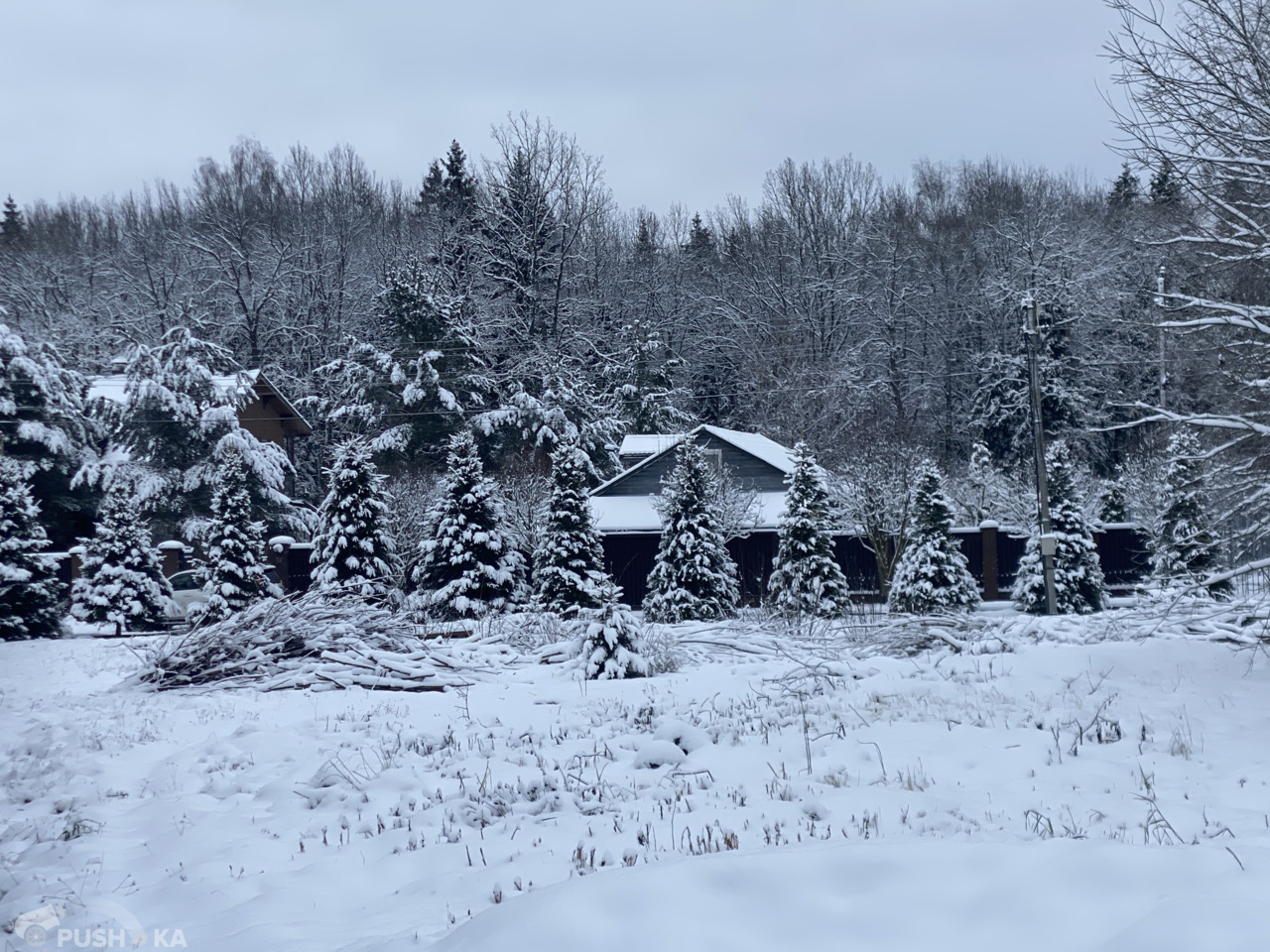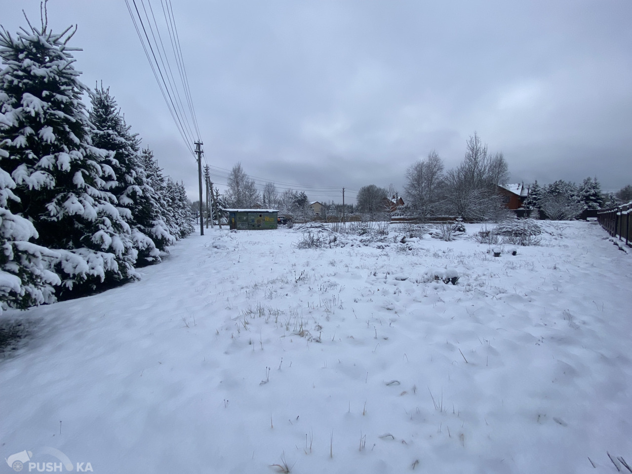С двух сторон участка высажены ели и сосны. Все соседи давно построили свои дома.